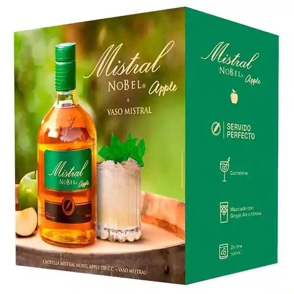 Pisco Mistral Nobel Apple + Vaso 750 cc