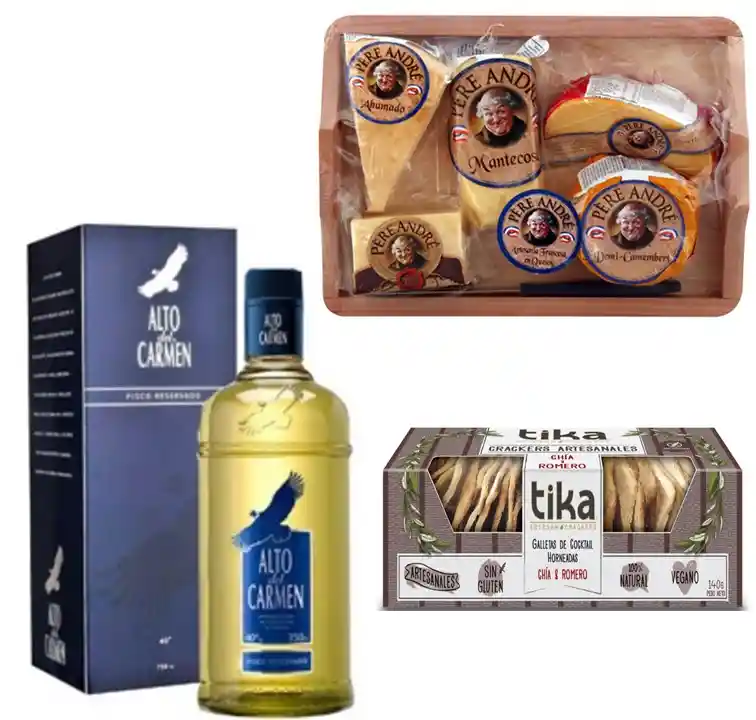 *Pisco Reservado 40° Alto del Carmen 750cc * Tabla 5 Quesos *Galletas crackers Artesanales