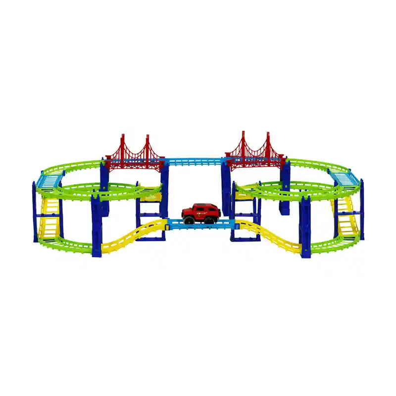 Pista de auto Excelente calidad 100% seguro. Juguete Pista de autos para niños, diseñados para niños de 3 a 10 años de edad. No tóxico y 100% de seguridad hecho con plásticos ABS respetuosos con el medio ambiente. Bordes redondeados para evitar lesiones y garantizar un juego seguro, sin sustancias químicas y sin sabor, totalmente seguro para los niños. Gran regalo para niños perfecto para juegos de fantasía y navidad.