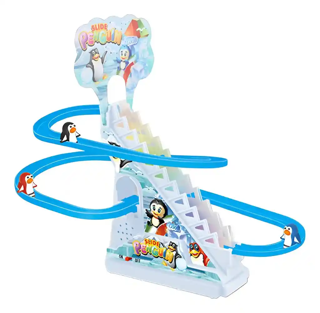 JUGUETES DESLIZANTES: Los pingüinos creativos y divertidos suben las escaleras y se deslizan por las escaleras y se deslizan entre las luces parpadeantes y la música: los juguetes deslizantes con rieles eléctricos vienen con luces LED parpadeantes y música alegre, y los pingüinos subirán las escaleras con la música y luego se deslizarán por el tobogán. FÁCIL DE INSTALAR: el juego de carreras requiere un montaje y desmontaje sencillos y sencillos, práctico para llevarlo a cualquier parte después del desmontaje. JUGUETES EDUCATIVOS PARA LA PRIMERA INFANCIA: este juguete deslizante para pingüinos desarrolla la motricidad fina de los niños y les ayuda a identificar los colores y mejorar la coordinación mano-ojo. REGALOS: El juego de juguetes deslizantes es un buen regalo de cumpleaños, vacaciones o día del niño para niños, niñas y niños.