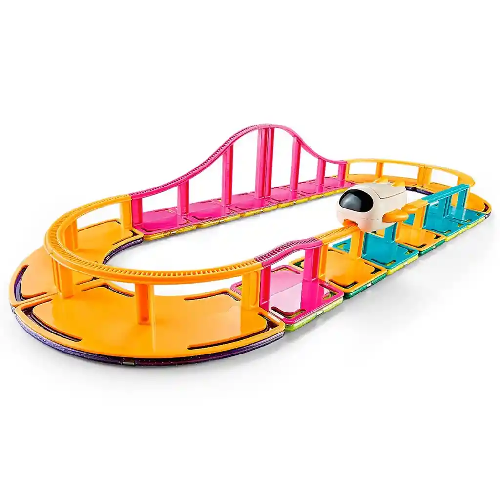 Juguete niño. Pista de Tren Magnética 29 Piezas, Construye tu propia pista aérea en 2D y 3D con los bloques ge...Ver más