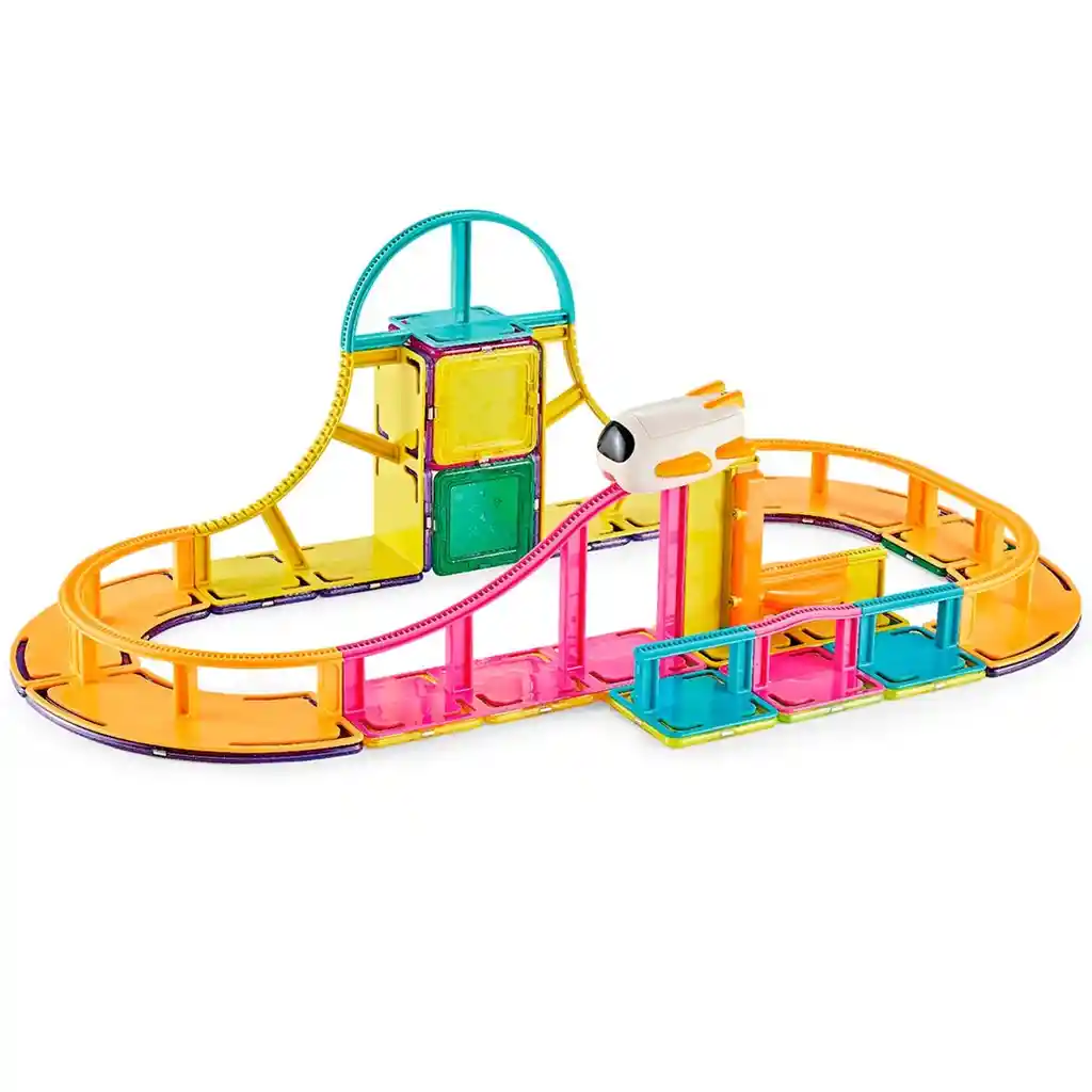 Juguete niño. Pista de Tren Magnética 40 Piezas, Construye tu propia pista aérea en 2D y 3D con los bloques ge...Ver más