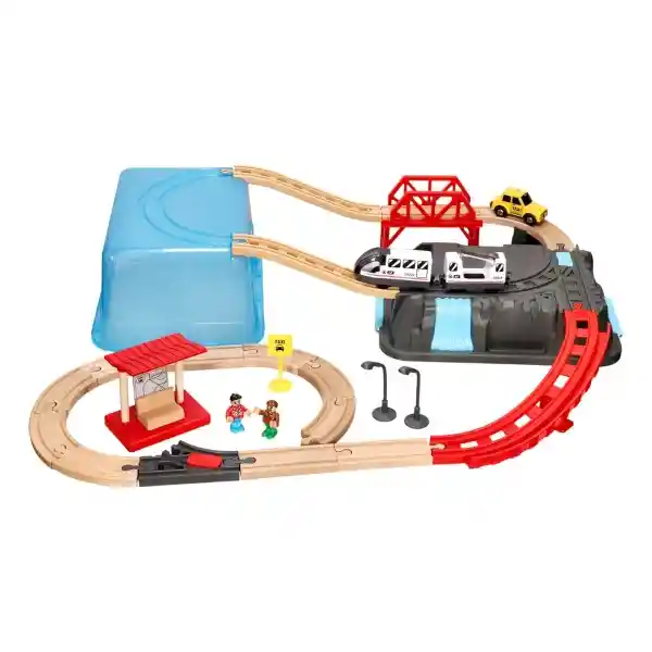 Con Pista Para Tren de Juguete. Con 39 Piezas de Madera y Magnéticos Entre Ellas un Tren a Baterías y Personajes. Ocupa 2 Baterías AA (No Incluidas) Ideal Para Mayores de 3 Años.