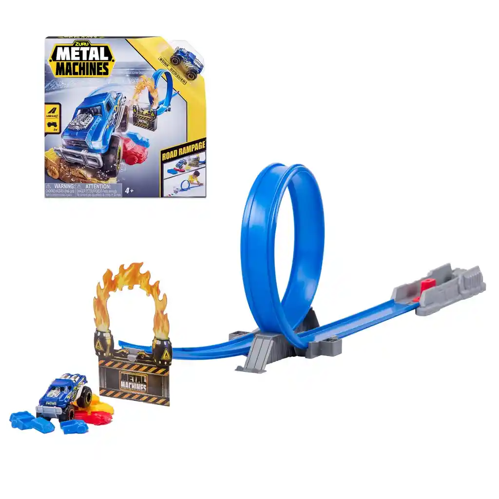 ¿Estás listo para una diversión extrema? La pista rampage de Metal Machines está llena de acción y locura ya que los niños podrán poner a prueba sus habilidades como corredores haciendo que sus autos hagan saltos y acrobacias increíbles. Esta pista tiene 1.44 metros de circuito y viene con un aro de fuego por el que deberán pasar evitando aplastar los demás autos. Esta pista incluye 3 autos para trucos y una máquina de metal Bone Crusher. Este juguete está pensado para incentivar el desarrollo de los niños, desarrollando sus habilidades cognitivas, sensoriales, su expresión social y emocional, promoviendo en ellos la imaginación, la creatividad y el juego de rol.