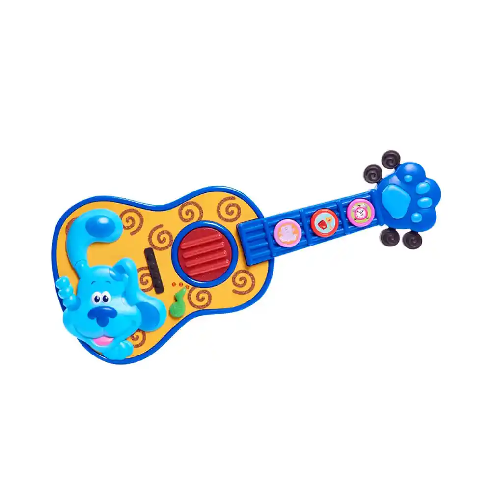 Los niños pueden cantar y disfrutar de fantásticas canciones de Blue’s Clues & You! con Blue's Clues & You! Guitarra para cantar. Con tres modos de juego diferentes y dos canciones, esta adorable guitarra electrónica está inspirada en la Handy Dandy Guitar que Josh toca en el programa. ¡Los pequeños músicos pueden escuchar y tocar con Blue’s Clues & You! tema musical y una versión instrumental de "Old McDonald". Presione el botón de puente para escuchar música y ver cómo se ilumina en sintonía con la canción. Los niños pueden incluso tocar los botones del mástil de la guitarra o golpear la barra de golpe con la forma de la oreja de Blue para obtener efectos de sonido especiales. Juguetes para ayudar a su pequeño buscador de pistas a usar su mente, dar un paso a la vez y hacer lo que quiera hacer. Requiere 3 pilas AA (incluidas). Mide 39 cms de alto y se recomienda a partir de 3 años