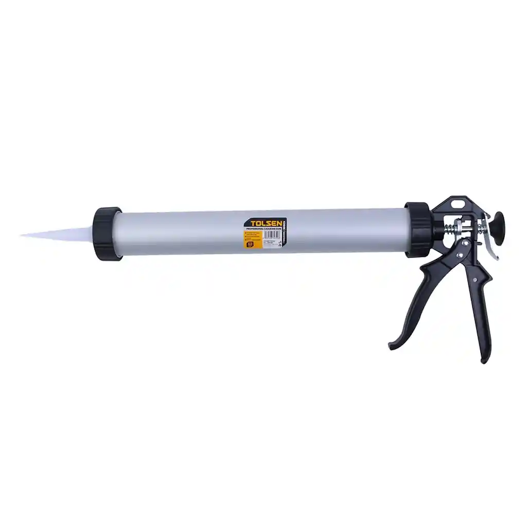 Pistola Calafatear para Pate 375mm/15". Cuerpo de Aluminio y barra de empuje en acero. Mango de Plastico. Todos los Productos TOLSEN cumplen un estricto control de calidad en nuestro centro de pruebas equipado con el probador de por vida, test de impacto, medidor de dureza, test de dibujo, ensayos de materiales, test de voltaje, etc