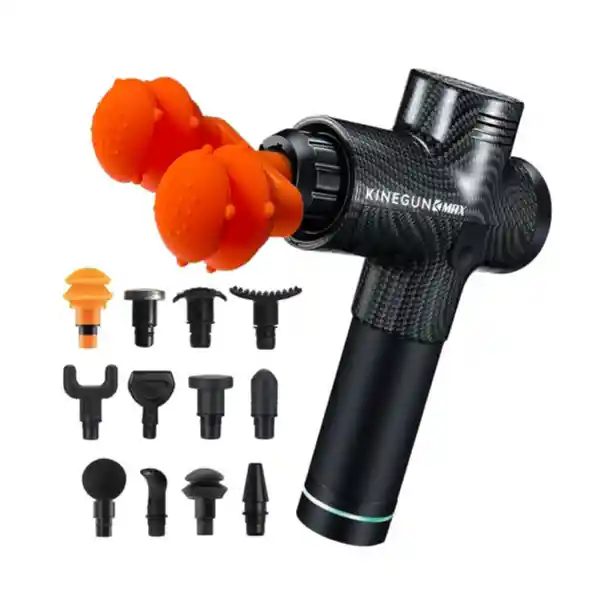 Pistola de masaje de 200W con 13 cabezales, 30 niveles de intensidad y 4000 RPM ideal para dolencias y recuperación muscular. incluido metálico para aceites y maletín