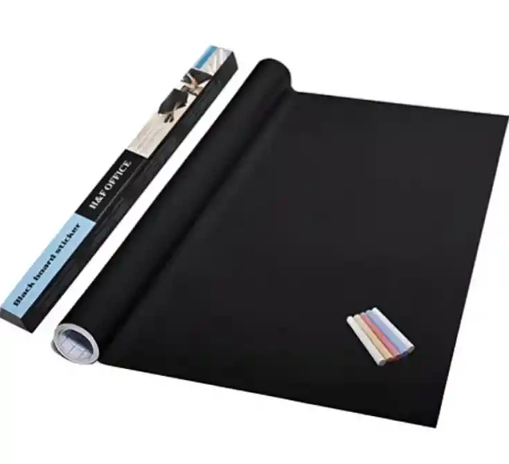 Pega en paredes, puertas, armarios, etc. Funciona como sticker adhesivo. Incluye 4 tizas de colores de regalo. Puedes cortarla a la medida deseada. Color: Negro. Tamaño: 2 mt de largo x 45 cm de ancho