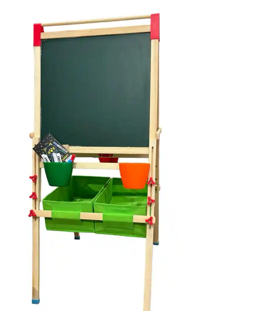 Pizarra Con Atril, el complemento perfecto para el desarrollo de los más pequeños. Es un accesorio ideal para los bebés y niños. Es segura, duradera y tiene un diseño atractivo, lo que la hace perfecta para el desarrollo de su creatividad. Está fabricada con materiales de alta calidad, lo que la hace duradera y segura. Es libre de BPA y otros materiales tóxicos, por lo que es segura para la piel delicada de los bebés y niños. Tiene un diseño atractivo que llama la atención de los bebés y niños. También tiene un atril que permite colocarla a la altura adecuada para que los niños puedan escribir o dibujar cómodamente. La Foto es referencial, la pizarra no incluye plumones ni marcadores. Beneficios de la Pizarra: Segura Durable Diseño atractivo Atril.