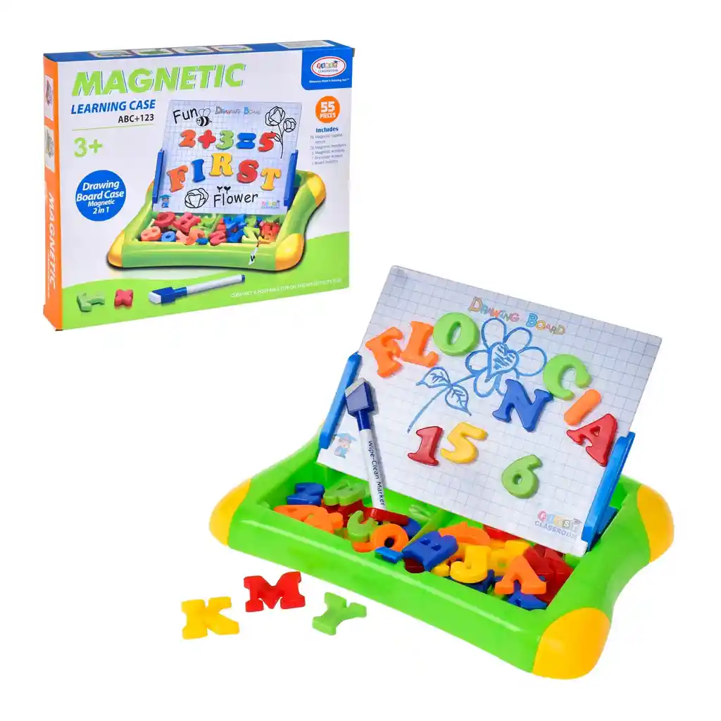 La pizarra magnética 2 en 1 es un juguete educativo ideal para niños de 3 años en adelante. Cuenta con una cara acrílica magnética siendo esta una herramienta versátil para el aprendizaje. La cara acrílica es ideal para dibujar, escribir y crear diferentes diseños. Las letras y números magnéticos incluidos permiten a los niños aprender el alfabeto y los números de una manera divertida y atractiva. También pueden usar la pizarra para crear sus propias historias, dibujos y juegos. Esta pizarra incluye un borrador para limpiar fácilmente los dibujos y escritos. La pizarra magnética 2 en 1 ofrece una serie de beneficios para el desarrollo de los niños, tales como el desarrollo de la motricidad fina, el desarrollo del lenguaje, del pensamiento creativo y de la concentración. Esta pizarra es un juguete educativo, divertido y versátil que ofrece una serie de beneficios para el desarrollo de los niños, siendo esta una excelente opción de regalos ya que los niños pueden aprender y divertirse al mismo tiempo.