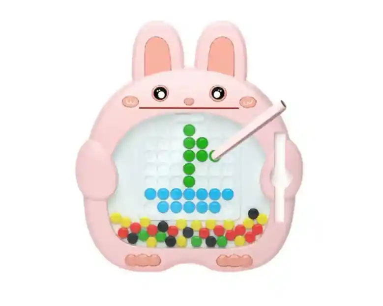 Esta pizarra magnética de dibujos es perfecta para inspirar la imaginación de los más pequeños. Con un conjunto de fichas magnéticas vibrantes de formas circulares, los niños pueden crear y combinar sus propias obras de arte en un instante. Además, incluye tarjetas con patrones que guían la creación, ofreciendo nuevas ideas y desafíos. El lápiz imantado incluido permite mover y colocar las fichas fácilmente, haciendo que el juego sea dinámico y divertido. Su diseño compacto y ligero la hace ideal para usar en casa o llevar a cualquier lugar. Además de promover la creatividad, esta pizarra ayuda a desarrollar habilidades motrices y coordinación, ofreciendo una experiencia de juego educativa y entretenida.