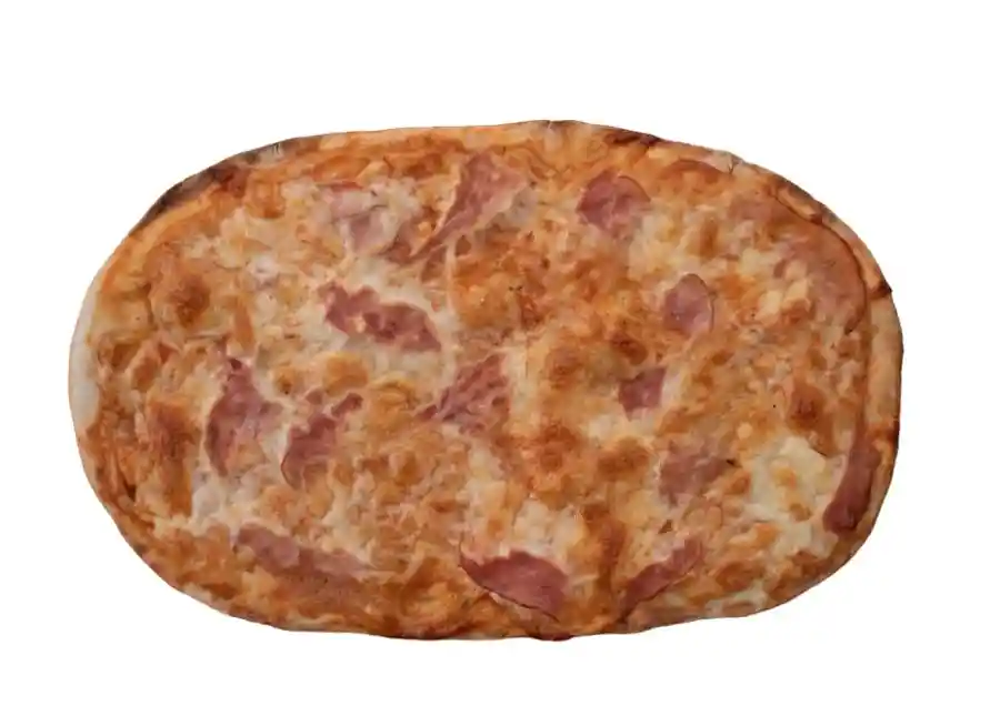 Pensada para los más pequeños Base de Mozarella, Salsa de Tomate Casera y Orégano y Jamón Artesanal Instrucciones de preparación Pre calienta el horno 10 minutos al máximo con la lata adentro. Pon tu pizza directamente congelada, espera de 8 a 10 minutos y a disfrutar! Comen 2 a 3 personas.