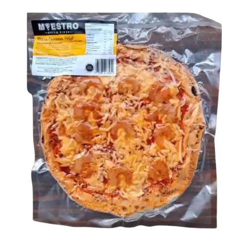 Ingredientes: Salsa de tomate, mozzarella fior di latte y camarones al pilpil.