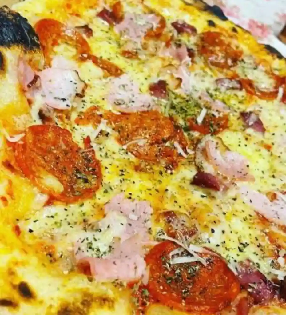 Pizza congelada napolitana: queso mozzarella, salsa de tomate, jamon y tomate