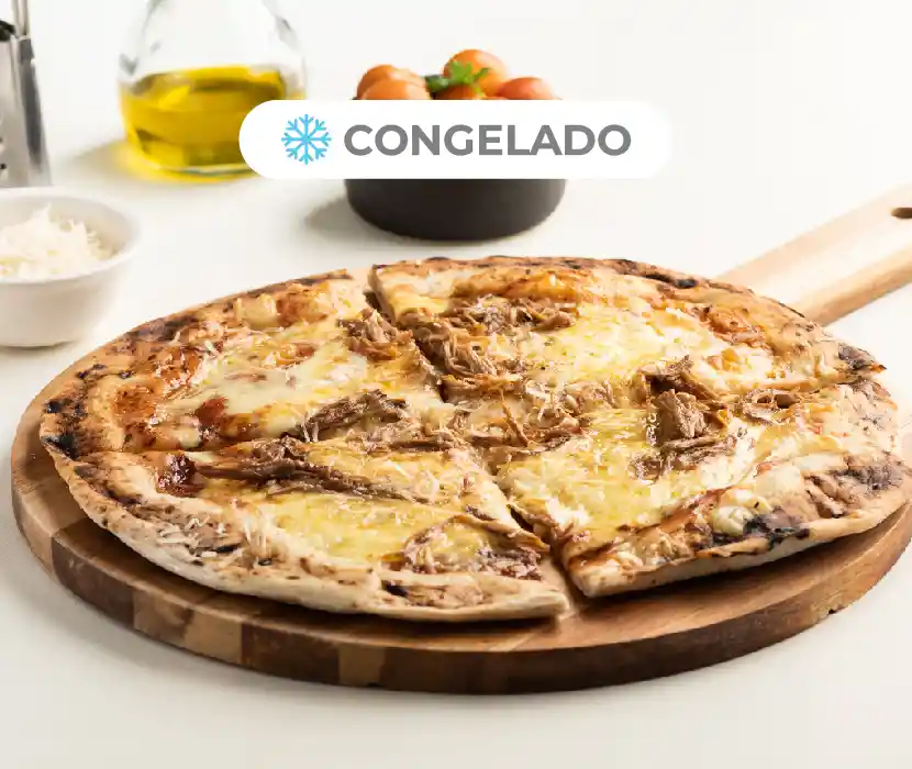 Esta pizza es una fusión de una pizza napolitana con 24 horas de fermentación en frío, con una porteña, con ese sabor de barrio argentino. La mechada le da ese toque perfecto que faltaba.