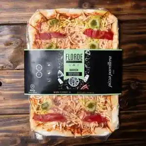 Pizza Pomodoro, queso mozzarella, pimentón juliana, palmito y pesto albahaca.