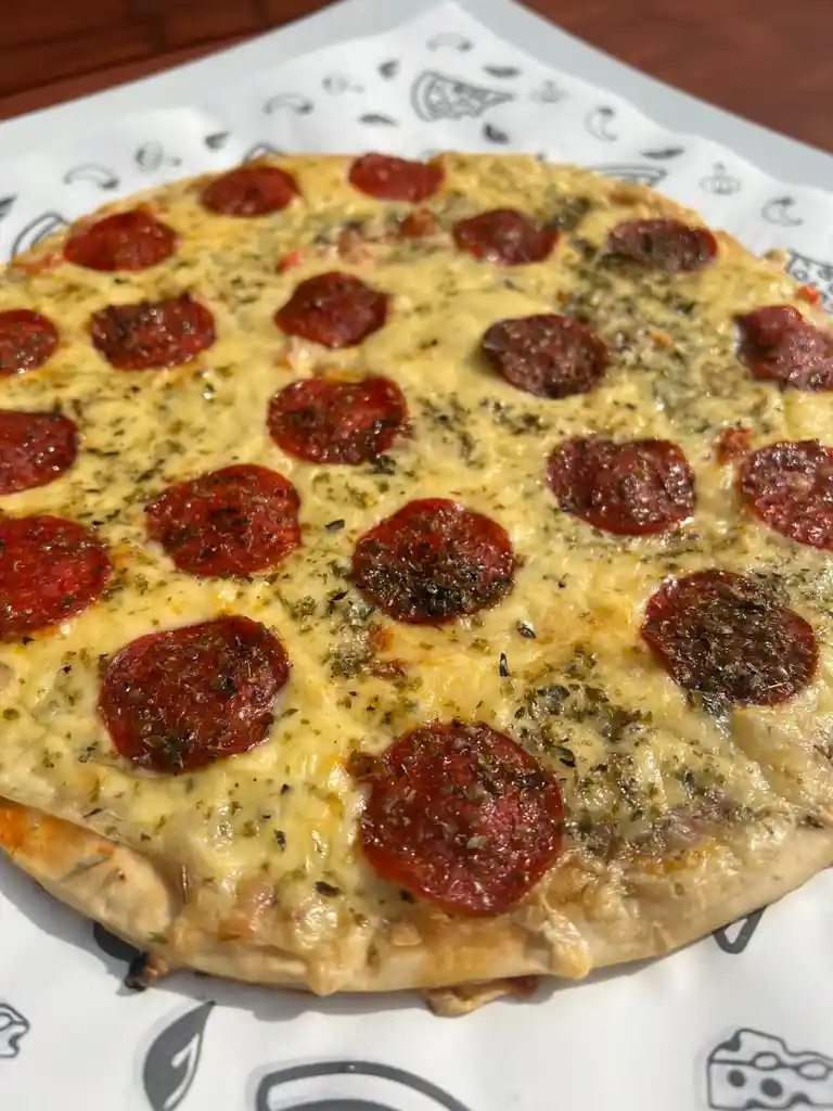 LA PEPECADORA ES UNA PIZZA SIN ARREPENTIMIENTOS. EL PEPERONI APORTA SU SABOR INTENSO Y ESPECIADO, EQUILIBRADO POR LA CREMOSIDAD DEL QUESO MOZZARELLA Y LA FRESCURA NATURAL DEL TOMATE CHERRY. EL PIMENTÓN AÑADE UN TOQUE VEGETAL Y CRUJIENTE QUE REDONDEA ESTA EXPERIENCIA SABROSA, JUGADA Y ADICTIVA. IDEAL PARA QUIENES NO TEMEN A LOS SABORES POTENTES Y BUSCAN UNA PIZZA CON ACTITUD.