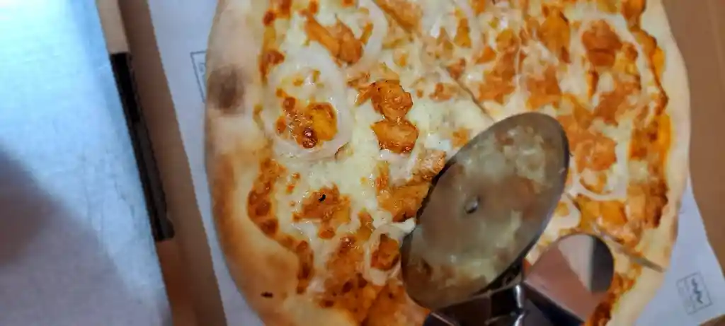 PIZZA POLLO AL BARBECUE Y CEBOLLA - QUESO MOZZARELLA Y SALSA DE TOMATES NATURALES - MASA ARTERSANAL DE 32 CM