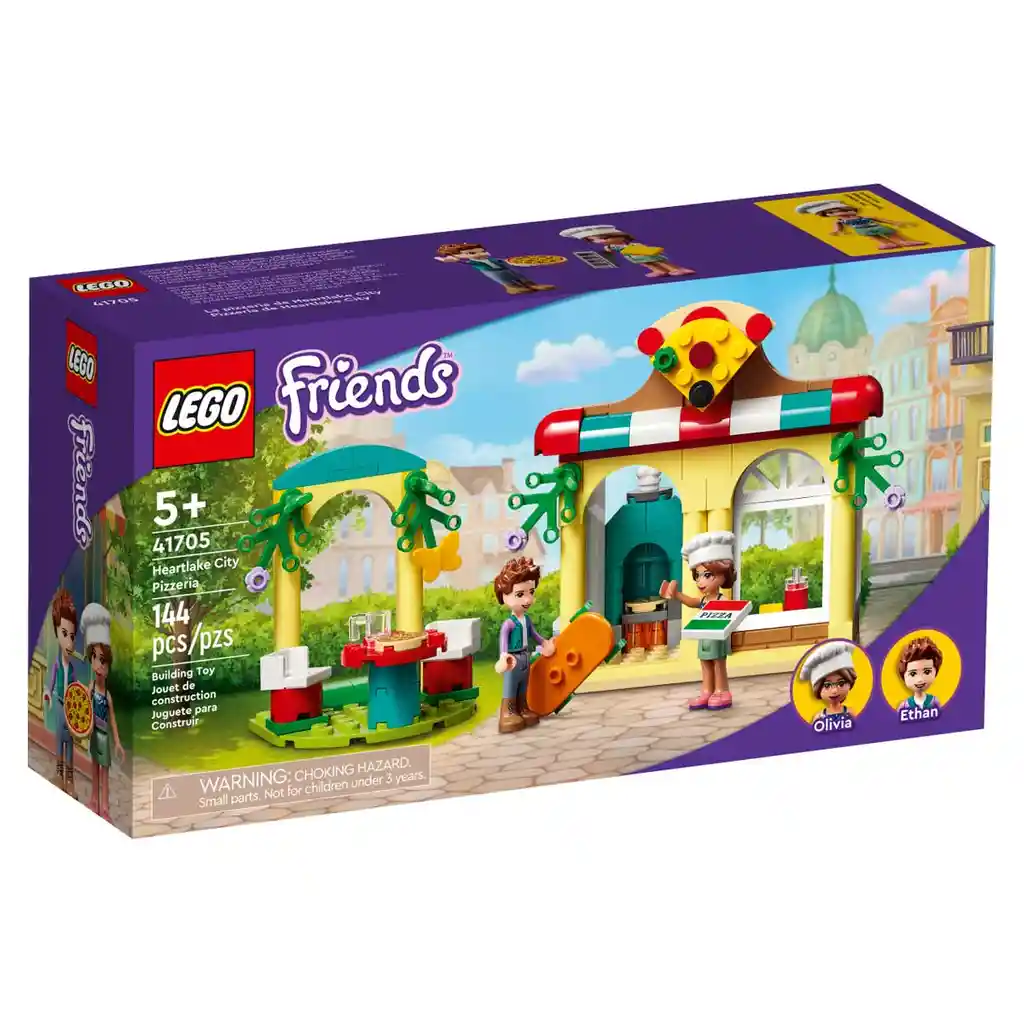 ¡Regala a tu peque los ingredientes perfectos para estimular su creatividad con el divertido set LEGO® Friends Pizzería de Heartlake City (41705)! Las jóvenes amantes de las pizzas de 5 años o más podrán jugar a interpretar que trabajan en un establecimiento donde elaboran su comida favorita. Además, contarán con un montón elementos para explorar que representan alimentos. Como en el mundo real El juego contiene un local de comida para llevar en el que las peques pueden imaginar que toman nota de los pedidos y usan la caja registradora, así como una zona independiente de terraza con asientos para hacer como que sirven a los clientes. El set, que incluye un horno de pizza de juguete, ofrece un gran menú de diversión flexible, ya que las niñas pueden disponer la pizzería como quieran. Este vistoso set viene con 2 personajes de LEGO Friends y numerosos accesorios que darán lugar a horas de creativas historias. El colorido modelo quedará fenomenal expuesto en su habitación. • Una ración de juego divertido: El set para regalar LEGO® Friends Pizzería de Heartlake City (41705) está lleno de creativos accesorios y detalles para jugar a los restaurantes Regalo para fans de las pizzas: Incluye a LEGO® Friends Olivia y Ethan, una zona independiente exterior con asientos, un horno de pizza de juguete, una pala de pizza, un monopatín y elementos que representan queso, un rallador y un bote de salsa. • Muchas formas de jugar: Las niñas podrán imaginar que son una chef, ocuparse del servicio de comida para llevar o atender la mesa. • Ingredientes para estimular la creatividad: El set construible, diseñado para mayores de 5 años, traslada el divertido ajetreo de los restaurantes a la habitación de las peques. • Dimensiones: Este set de juguetes LEGO® Friends mide aproximadamente 12 cm de altura, 11 cm de anchura y 6 cm de profundidad. • Juegos que invitan a interpretar situaciones del mundo real: Los sets LEGO® Friends contienen personajes con los que es fácil identificarse y escenas realistas que permiten a las niñas recrear la vida cotidiana desde la comodidad de su habitación. • Calidad garantizada: Los sets LEGO® Friends cumplen estrictas normas de calidad del sector, por lo que ofrecen siempre las mismas cualidades, son compatibles entre sí, y se conectan y separan fácilmente una y otra vez. • Seguridad acreditada: Los componentes LEGO® se dejan caer, se calientan, se aplastan, se retuercen y se analizan para verificar que satisfacen rigurosos estándares mundiales de seguridad.