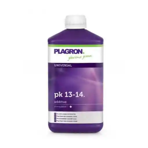 Plagron PK 13 14 es un Booster y estimulador de Floración para frutos más compactas y firmes. Abono biomineral que provee a la planta potasio y fósforo adicional en la fase de la floración. De este modo promueve la formación de frutas más compactas, duras y pesadas. Plagron PK 13 14 garantiza un alto rendimiento. Este potente producto es absorbible directamente por la planta, de fácil dosificación, además es un producto muy concentrado y económico en su uso. Plagron PK 13 14 es un fertilizante líquido, con el tu tienes el control. PK 13-14 es un booster o potenciador de la floración, usado en el momento adecuado puede hacer que tu cosecha aumente en producción y genera el mejor sabor.Características de Plagron PK 13 14- Añadir 2 ml de por 1 litro de agua (1:500). – Frasco de 500ml – Rinde 250 litros de agua