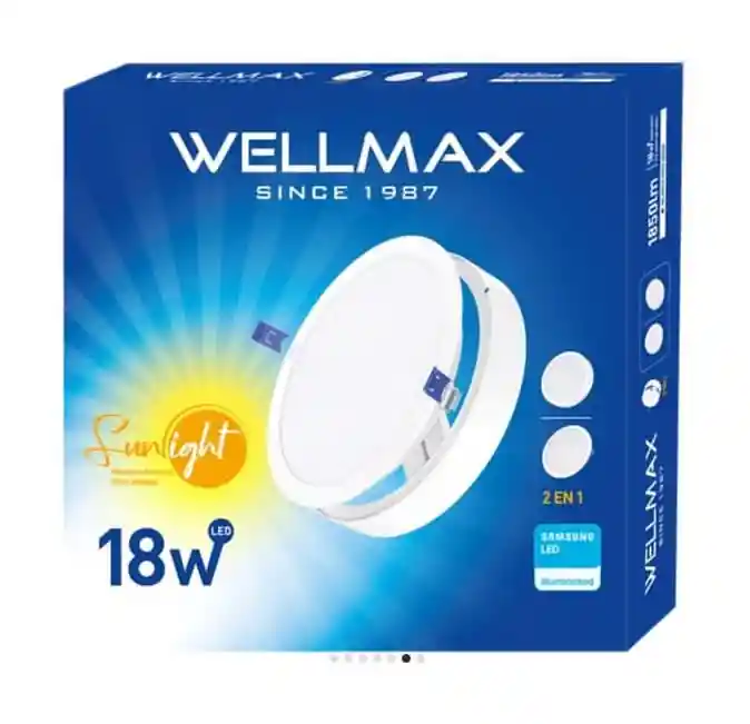 PLAFON LED REDONDO 18W WELLMAX DOS EN UNO (2 EN 1) PARA EMPOTRAR Y SOBREPONER BLANCO FRIO 6500K / 18W