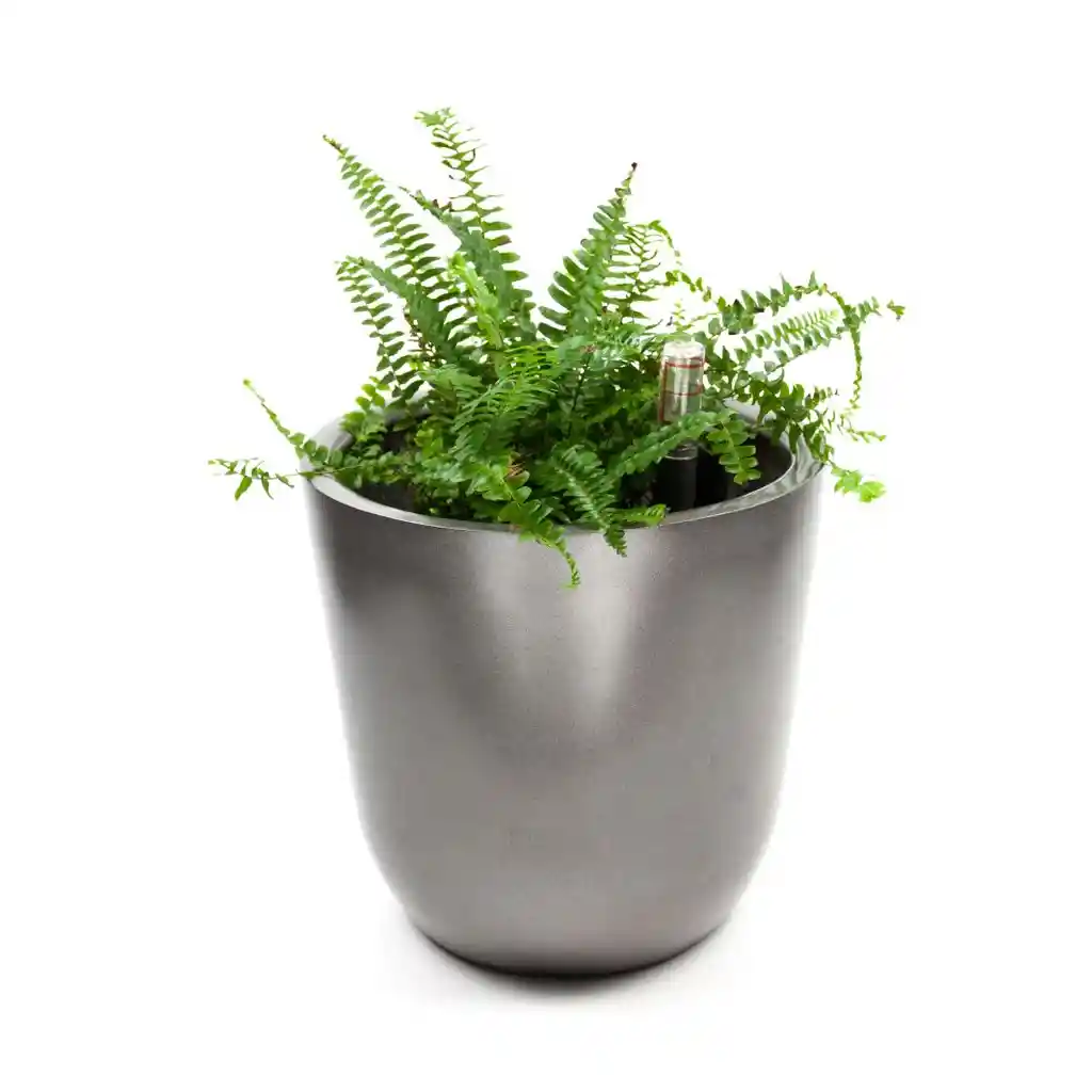 Héctor, la planta, mide entre 15 y 30 centímetros de alto aproximadamente, la altura final llegó del macetero. Foto referencial, las plantas varían en tamaño y cantidad de hojas. Acerca de Héctor Hector es un buen guerrero para tener en el interior de tu hogar, ya que no solo ayuda a limpiar el aire de contaminantes, sino que también se ha ganado el puesto dentro de las plantas fáciles de cuidar. Nuestro gran amigo Hector es originario de los trópicos sudamericanos, y si bien lo ubiques en esquinas con pedestales, creciendo o encima de algún mesón, te ayudará a transformar cualquier espacio en un lugar fuerte e importante. Consejos Héctor, como el gran guerrero que es, se adaptará a los distintos lugares donde lo quieras poner. Crecerá tanto en lugares bien iluminados, como también en lugares más sombreados. Los lugares secos, por lo que debes preocuparte de mantenerlo en una superficie húmeda. Es por esto, que debe mantenerlo lejos de la calefacción, el baño o la cocina sería un lugar ideal para él. Beneficios para la salud Héctor ayudará a eliminar el aire tóxico y contaminante que este presente en tu hogar. Eliminará especialmente el formaldehído producido por el plástico de los envoltorios. Cuidados principales Hector se adaptará fácilmente a los lugares donde lo pongas, preocúpate de no exponerlo al sol directo ya que sus hojas se deteriorarán. Idealmente Hector debe estar en lugares con semi sombra. Mantén su sustrato húmedo, su riego en verano debe ser más a menudo, con 3 o 4 veces estaría bien. En invierno baja la intensidad a la mitad, cuidado con el escarchamiento de sus raíces que se produce por el exceso de agua en épocas más heladas. La temperatura ideal de Hector es entre los 15º los 24º grados. Él no soportaría lugares expuestos al frío ni las heladas. También conocido como Nefrolepsis, Helecho Espada, Helecho, Héctor, Helecho Rizado, Nephrolepsis Exalta.