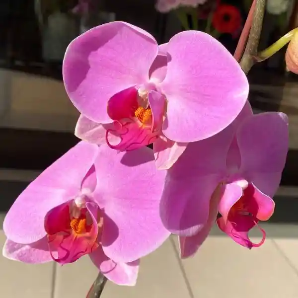 Planta Orquãdea Color Rosado En Base De Vidrio Floreria