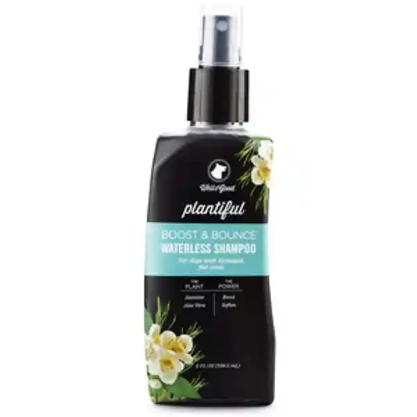 El Shampoo en Seco Para Perros Well & Good Plantiful Boost & Bounce es Una Solución Para Llevar Todos Los Beneficios de Los Aceites Esenciales y Aromas Los Transportará a un Día Relajante en el Spa. Simplemente Agite Rocíe y Peine el Pelaje Para Ver Cómo se Transforma en un Pelaje Limpio Fresco y Con Aromas Terapéuticos Que Deja a tu Mascota y a ti en un Relajante Estado de Ánimo. Beneficios: Ayuda a Reparar el Pelo Quebradizo Dándole Volumen. El Aceite de Jazmín en Combinación Con Aceite de Jojoba Contiene Antioxidantes y Vitaminas Que Ayudan al Mantenimiento de la Piel. El Aceite de Jazmín y Las Fragancias Aromáticas Ayudan a Calmar el Estrés y Los Nervios de Muchos Perros Durante el Baño. Excelente Para Resaltar el Brillo y Sedosidad Natural de tu Mascota..