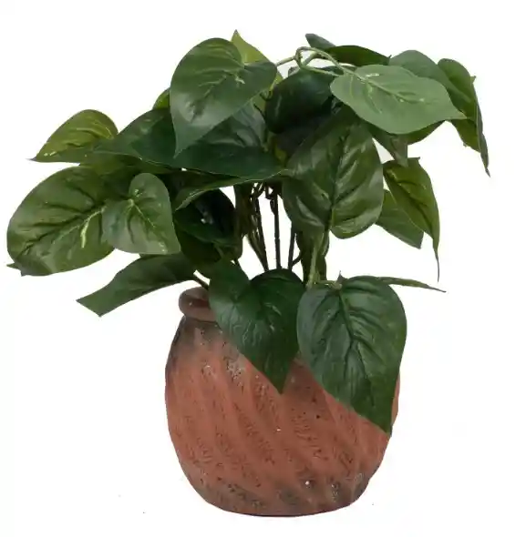 Plantita de hojas artificiales en macetero de cemento. Medidas: 61 x 21 x 66 cm.