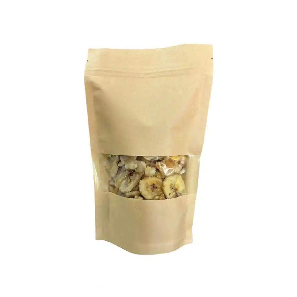 Plátano deshidratado, dulce y crujiente. Perfecto para snacks, postres o mezclar con frutos secos.