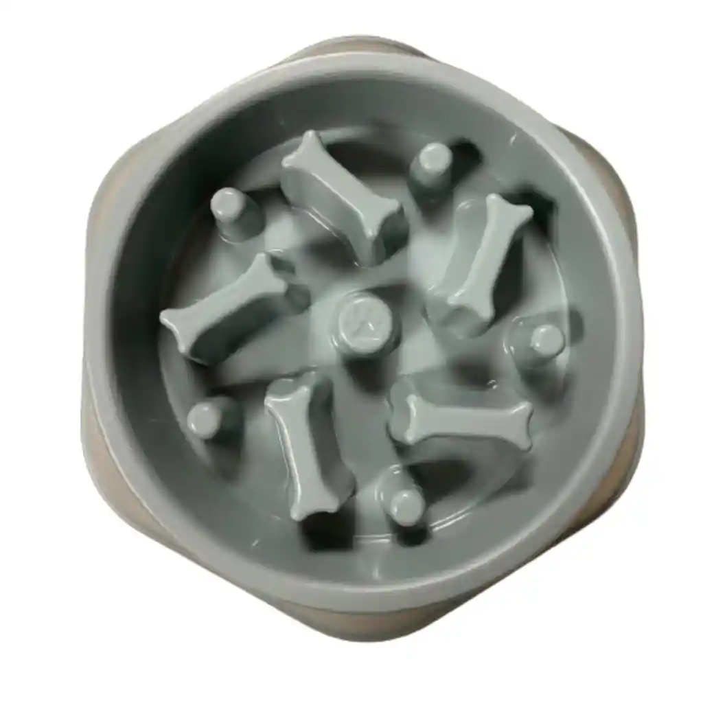 El Plato Anti-Estrés, es una innovadora y efectiva solución diseñada especialmente para perros, con un diámetro de 18 cm. Este producto ha sido diseñado pensando en la salud y el bienestar de tu perro, y su finalidad principal es fomentar una alimentación más lenta y pausada sin importar su edad. La finalidad de este plato interactivo radica en abordar varios problemas comunes que los perros pueden experimentar durante sus comidas: Prevención de atragantamientos: Al presentar una serie de obstáculos y protuberancias en el plato, se reduce la velocidad a la que el perro puede consumir su comida, minimizando el riesgo de atragantamientos o vómitos. Control de la ingesta: Este plato fomenta la masticación adecuada y la deglución más lenta, lo que ayuda a prevenir la sobrealimentación, la obesidad y los problemas digestivos. Estimulación mental: El diseño del plato Slow Feeder desafía a tu perro a "trabajar" un poco más por su comida al tener que mover y explorar el plato en busca de cada bocado. Esto proporciona una estimulación mental adicional, que puede ser particularmente beneficiosa para perros inteligentes o inquietos. Entretenimiento: Además de su función principal, este plato puede ofrecer entretenimiento durante la alimentación, lo que es útil si tu perro come solo y necesita un poco más de estimulación durante el proceso. Color: Verde