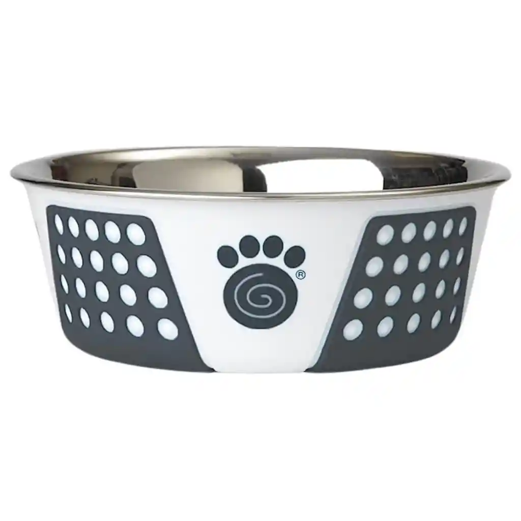 Características: - Duradero y ligero: núcleo interior de acero inoxidable fuerte con carcasa de plástico TPE ligero. - Seguro y práctico: la parte inferior de goma antideslizante protege de derrames y arañazos, apto para lavavajillas y fácil de limpiar - Decorativo y funcional: el cuenco de acero inoxidable ofrece una superficie de alimentación no tóxica, la carcasa exterior de plástico ofrece un diseño para la decoración moderna del hogar - Acero inoxidable: nuestros cuencos y comederos de acero inoxidable son ideales para alimentos y agua para perros, gatos, cachorros, gatitos y otras mascotas domésticas Medidas: 17 cm (ancho)/ 6.5 cm (profundidad) Color: Blanco