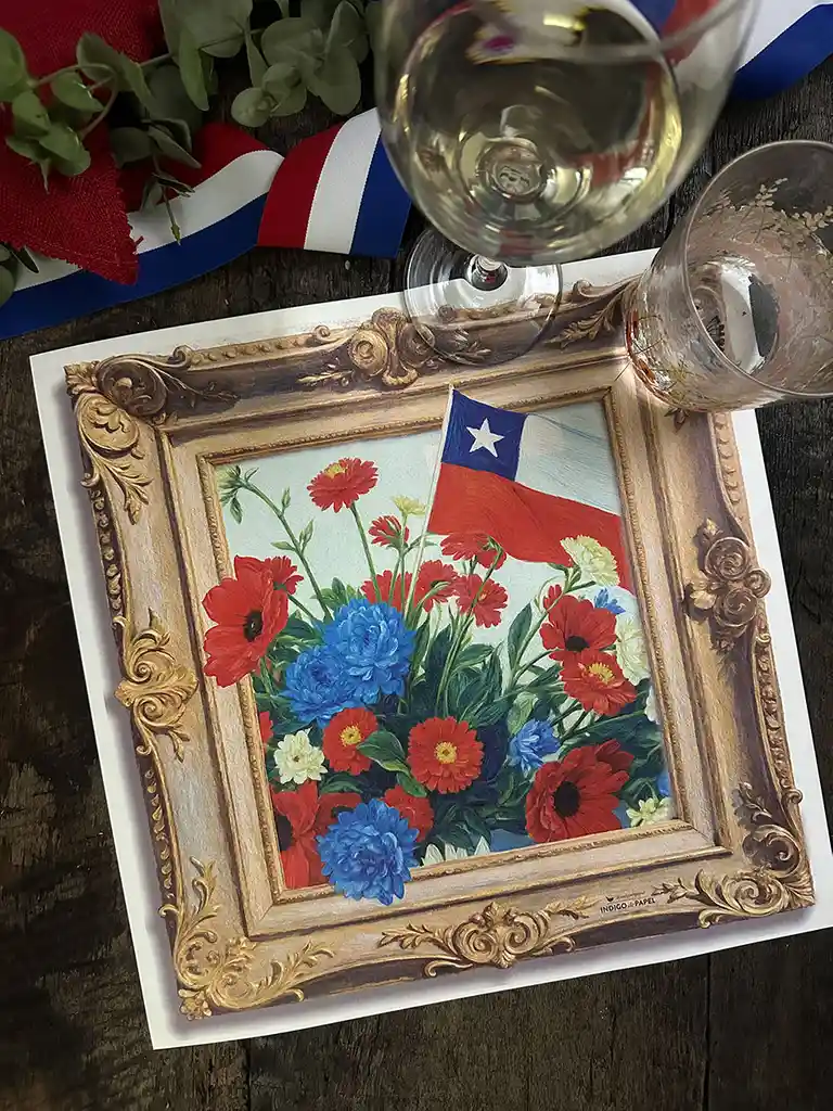 Set de 12 individuales de papel Tamaño 32,5 x 32,5 cm. Papel blanco (sin brillo) de 120 g. Diseñado y fabricado en Chile.