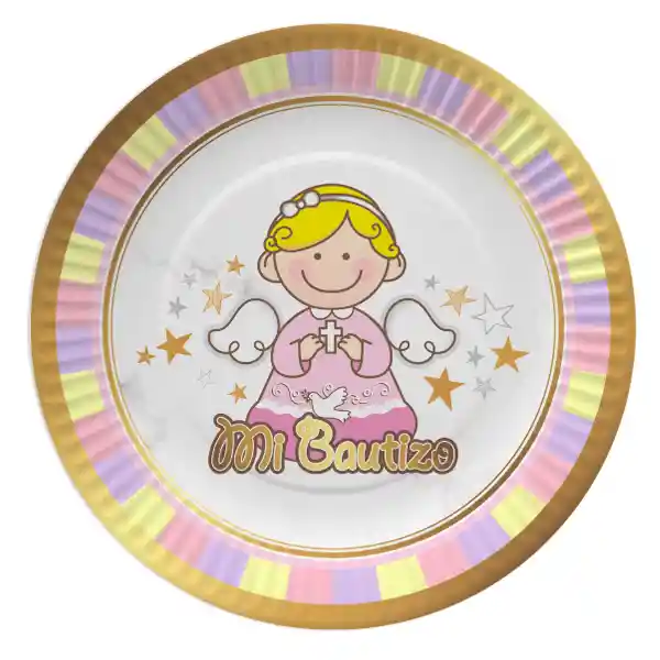 PLATO BAUTIZO ROSADO 6 UNIDADES
