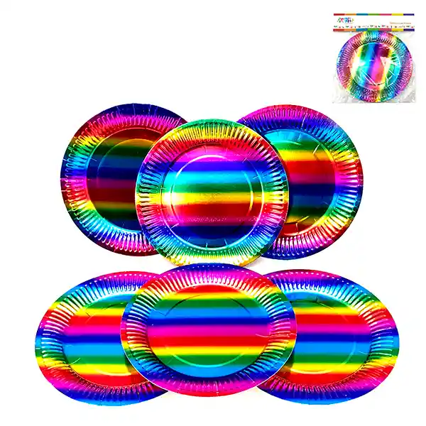 PLATO CARTON ARCOIRIS METAL MEDIANO 6 UNIDADES
