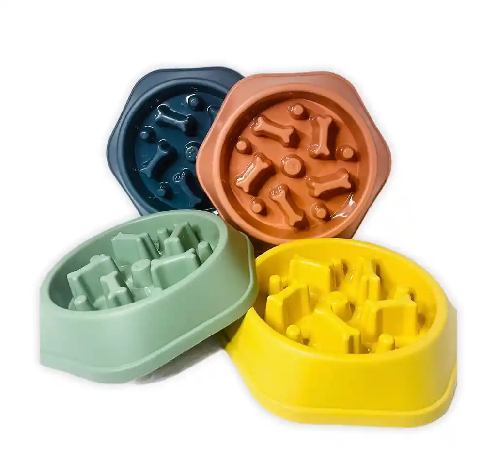 Plato comedero platico con base anti deslizante diseñado para mascotas por problemas de ansiedad al ingerir comida. disponible en colores AMARILLO - VERDE - AZUL