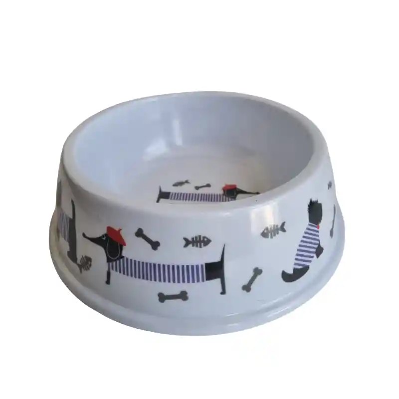 . Comedero para alimentación de mascotas. . En material resistente y fácil de limpiar. . Con borde de goma para evitar que se deslice. Especificaciones: . Material: Plastico . Dimensiones: 20 cm de diámetro x 6 cm. (Talla M) . Color: Blanco . Contenido: 1 Comedero.