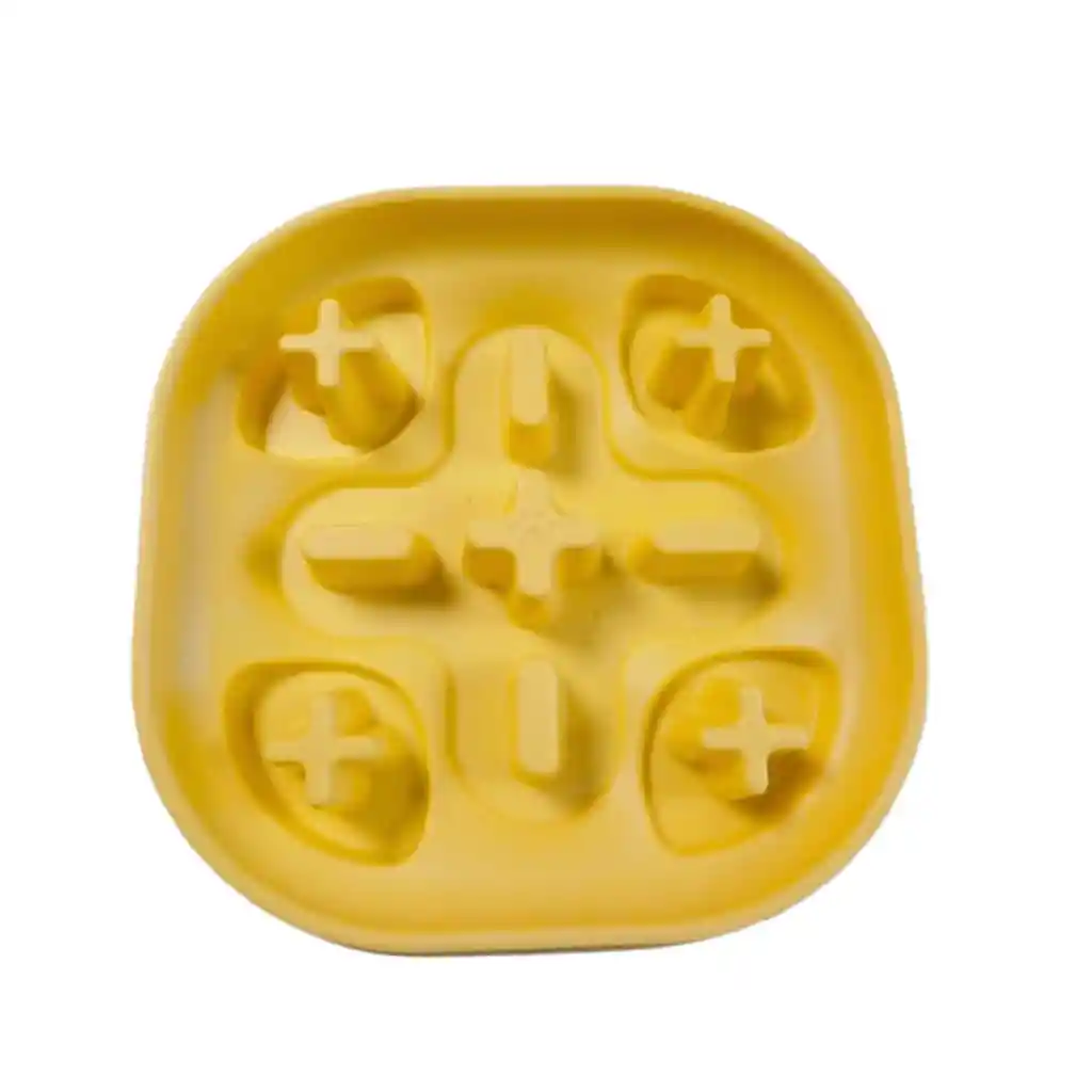 Plato comedero lento de plástico resistente para mascotas, diseñado para ralentizar la velocidad a la que comen perros o gatos. Función principal: Ayuda a prevenir la indigestión, los vómitos y la hinchazón al hacer que la mascota tarde más en consumir su comida. Material: Está fabricado de plástico resistente, ligero y fácil de limpiar. Diseño: Cuenta con un patrón de obstáculos internos (con formas de cruces y rectángulos en este caso) que obligan a la mascota a buscar la comida por los diferentes compartimentos. Uso: Es adecuado tanto para alimento seco como húmedo, e incluso puede usarse para hacer golosinas congeladas caseras. Diámetro: 22 cm Color: Amarillo