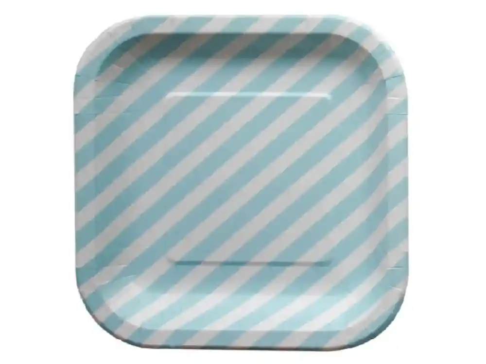 Plato Cuadrado Rayas 22 Cm X 10 Celeste