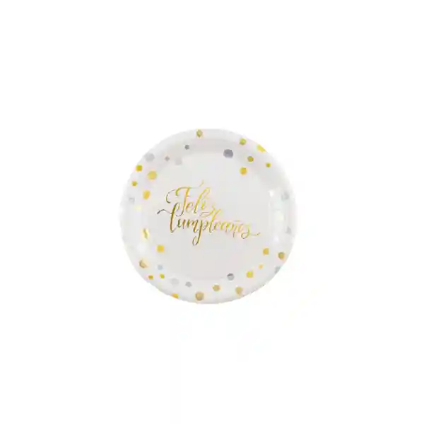 Plato Cumpleaños Blanco y Dorado - 18 cm
