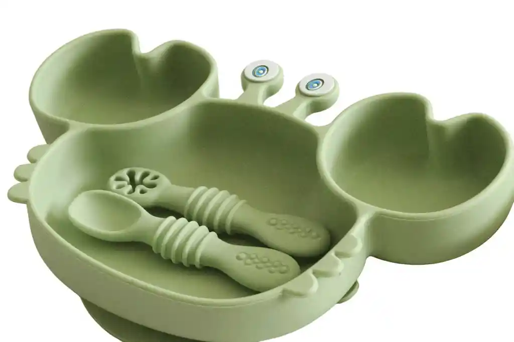 Pensado para acompañar al bebé y a sus padres en las primeras experiencias a la hora de comer. Incluye un plato con ventosa, una cuchara y tenedor con mango de bambú y punta de silicona. Características: Bordes curvados que facilitan la autoalimentación. Base de succión fuerte y oculta que se adhiere a la mayoría de las superficies. Apto para microondas y lavavajillas. Fabricado en silicona resistente, antibacteriana y libre de manchas. Silicona de grado alimenticio, segura y libre de BPA, ftalatos y PVC. Cuchara suave y flexible para cuidar las encías del bebé.