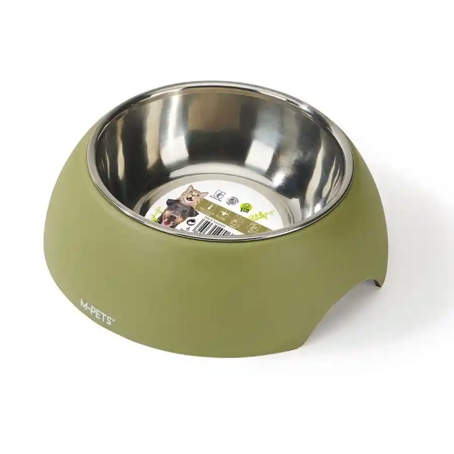 Cuencos ecológicos para mascotas de fibra de bambú con cuencos dobles de acero inoxidable, disponibles en varios tamaños y colores, duraderos y fáciles de limpiar. Formatos: 190ML, 350ML, 600ML
