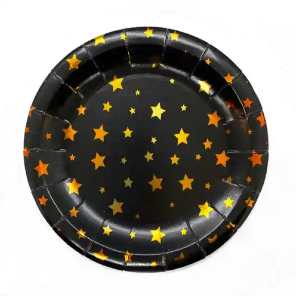 Plato Metalizados Negro Estrellas Doradas 23 cm