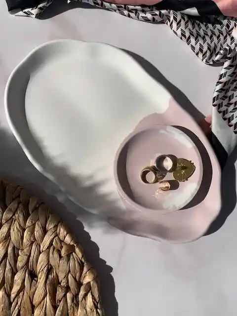 Plato Ovalado de concreto, hecho a mano, largo 28 cm ancho 18 cm