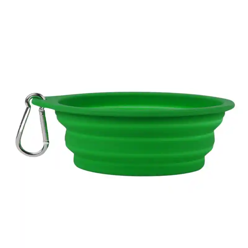 . Diseño plegable que se puede utilizar como juguete para mascotas cuando se dobla y como plato cuando se abre. . Perfecto para llevar a cualquier parte, de fácil uso y de alta calidad. . Con gancho para colgar en el pantalón, arnés o en un bolso. . Fácil de limpiar y resistencia a altas temperaturas. . Ideal como comedero o bebedero. . Material: Silicona. . Dimensiones: 15 cm de diámetro superior x 9 x 6 cm. . Color: Verde . Contenido: (1) Plato Plegable para Mascotas.