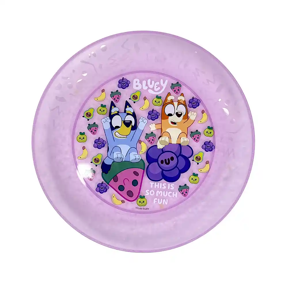 Lleva la diversión de Bluey a la mesa con este set de 4 platos reutilizables, perfectos para comidas, snacks o celebraciones infantiles. Fabricados en PP (polipropileno) de alta calidad, son resistentes, ligeros y seguros para el uso diario. Además, pueden convertirse en souvenirs originales para los invitados de cumpleaños y otras fiestas. Beneficios Diseño alegre de Bluey que encanta a niños y niñas Apto para microondas (máx. 2 minutos a 600 W) Reutilizable y resistente, ideal para uso diario Seguro para lavavajillas, fácil de limpiar Tamaño ideal para comidas y snacks infantiles Perfecto como souvenir para celebraciones infantiles Detalles técnicos Formato: Set de 4 platos Material: PP (polipropileno) reutilizable Medidas: 19,5 cm de diámetro Uso en microondas: Máximo 2 minutos a 600 W Apto para lavavajillas: SÃ Diseño: Bluey ¡Prácticos, duraderos y llenos de color para acompañar cada comida! PÃdelo ahora y recÃbelo en la puerta de tu casa