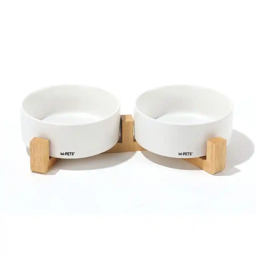 Elegantes cuencos dobles de cerámica con soporte de bambú, de 350 ml cada uno, aptos para lavavajillas y con d...Ver más