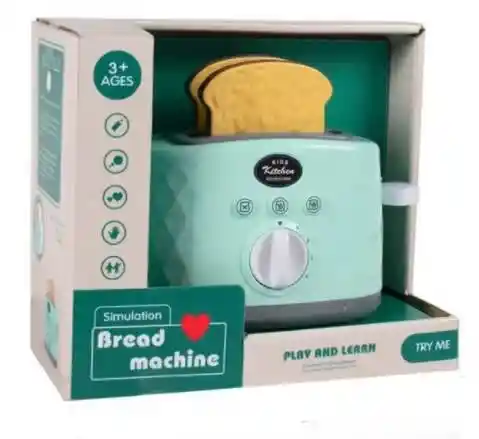 Tostadora Bread machine con temporizador giratorio, la tostadora de juego de simulación tiene una acción emergente. Los niños pueden imitar la acción de los padres para aprender a hornear panes. el pequeño puede usar su propia tostadora como los padres. Es una buena manera de ayudar a los niños a aprender habilidades prácticas y explorar cómo se preparan los alimentos que comemos. Recomendado de 3 años en adelante.