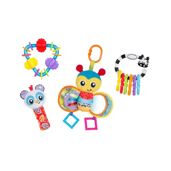 ¡Estimula la Imaginación y Desarrollo de tu Bebé Con Estos Entretenidos Juguetes! Este Divertido Set Incluye Diferentes Juguetes Con Los Que Podrás Tener a tu Bebé Entretenido Por Horas. Además, ¡Son Perfectos Para Hacer Mucho Más Fácil su Crecimiento y Desarrollo!. Por Ejemplo, el Set Incluye un Estimulante Sonajero, Juguetes de Argollas Para su Motricidad, un Colgante de Mariposa, y un Práctico y Útil Mordedor Para Hacer Más Sencilla la Etapa de Dentición de tu Bebé. ¡Sus Diferentes Texturas, Colores y Formas Estimularán la Imaginación de tu Bebé Donde Sea Que Vayan! Sonajero Mordedor Juguete de Argollas Colgante de Mariposa