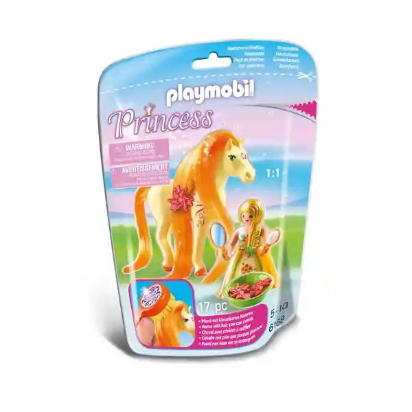 Imagina Las Más Mágicas Historias Llenas de Aventura Diversión y Entretención. Junto a la Hermosa Princesa Cuida de Este Majestuoso Corcel Con Cola y Crin de Cabello Real al Cual Podrás Peinar y Decorar su Hermosa Melena Con Los Adorables y Brillantes Accesorios. Este Set de Playmobil Princesa Con Caballo Naranjo Incluye Una Figura de Princesa Con Falda Desmontable Bajo la Falda Lleva Unas Botas de Equitación Para Que Monte Cómodamente el Caballo También Viene Con un Peine Pinzas Para el Cabello Espejo Canasta y Otros Accesorios Adicionales. Pasa Interminables Horas de Juego Dejando Volar tu Imaginación Más Allá de la Magia.